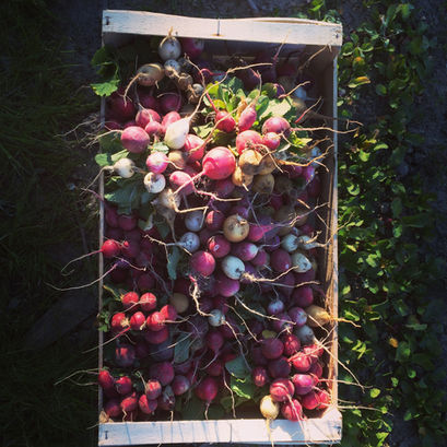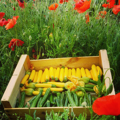 Nous recherchons de nouvelles variétés à produire et nous nous passionnons pour les anciennes. Nous adorons fouiller dans les vieux manuels agricoles pour trouver les techniques et les légumes oubliés. Nous sommes complètement obsédés par les tomates et à ce jour, nous en cultivons plus de 40 variétés : la tomate du voyageur, la reine des hâtives, la joie de la table, la beauté blanche, la carotina, la tomate kaki et tant d'autres tomates imprononçables et laissées à l'écart de nos étalages. Notre curiosité s'élargie chaque jour, nous partons à la recherche des aubergines aux formes méconnues, des courgettes aux goûts originaux, des poivrons, petits, gros, allongés, ronds, des concombres poilus, biscornus, d'Arménie ou Libanais, ou même des concombres citrons qui font rire les clients sur le marché.